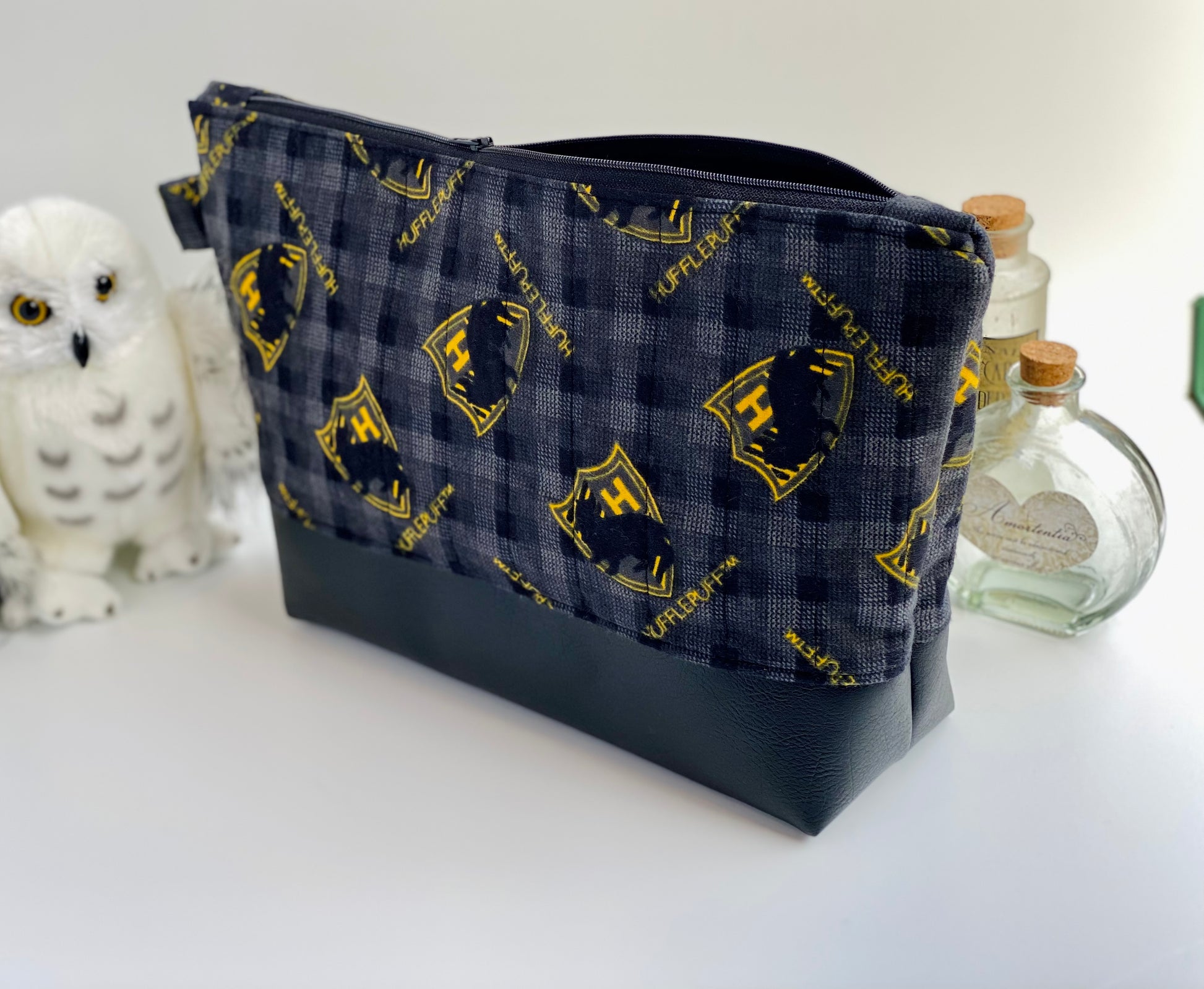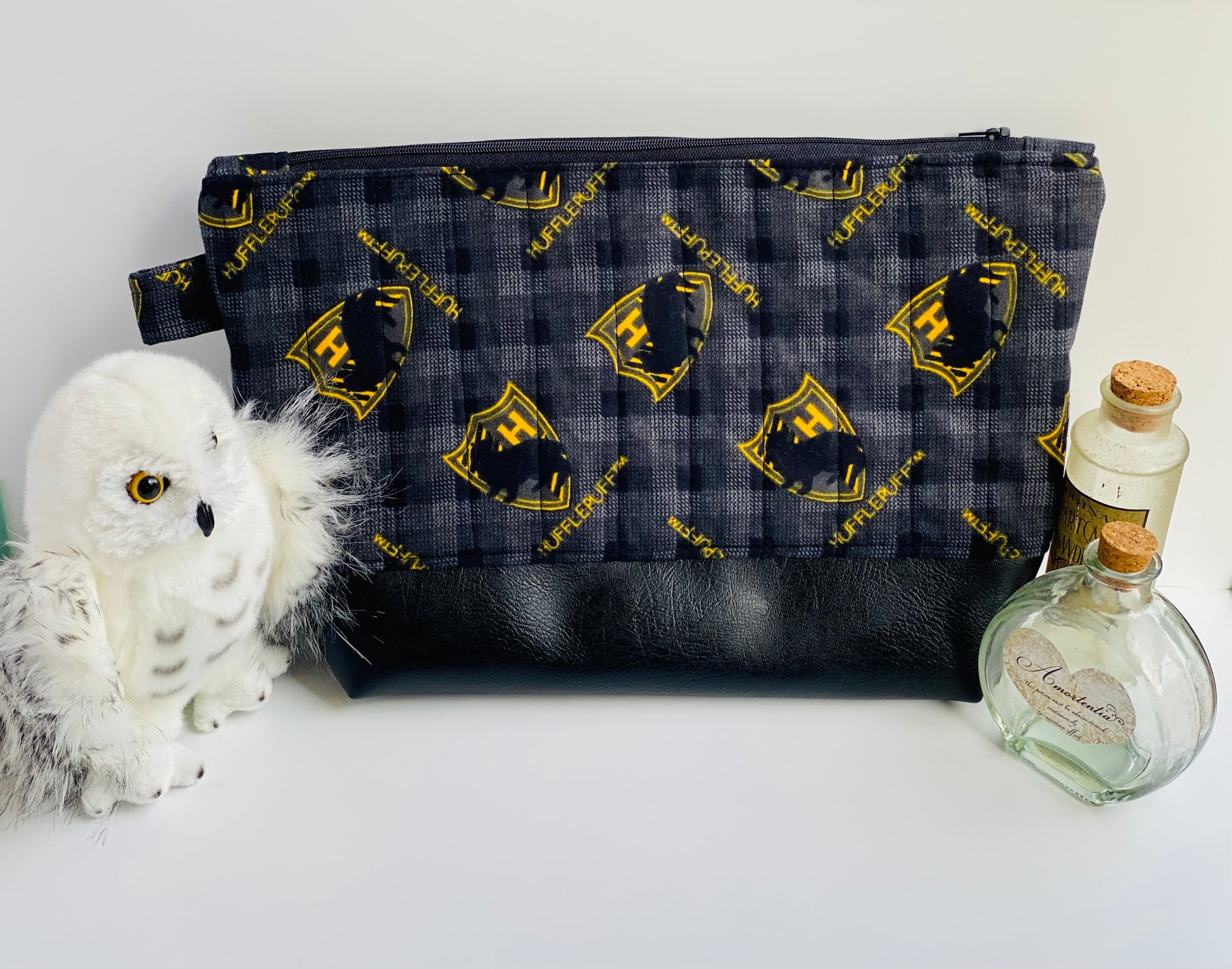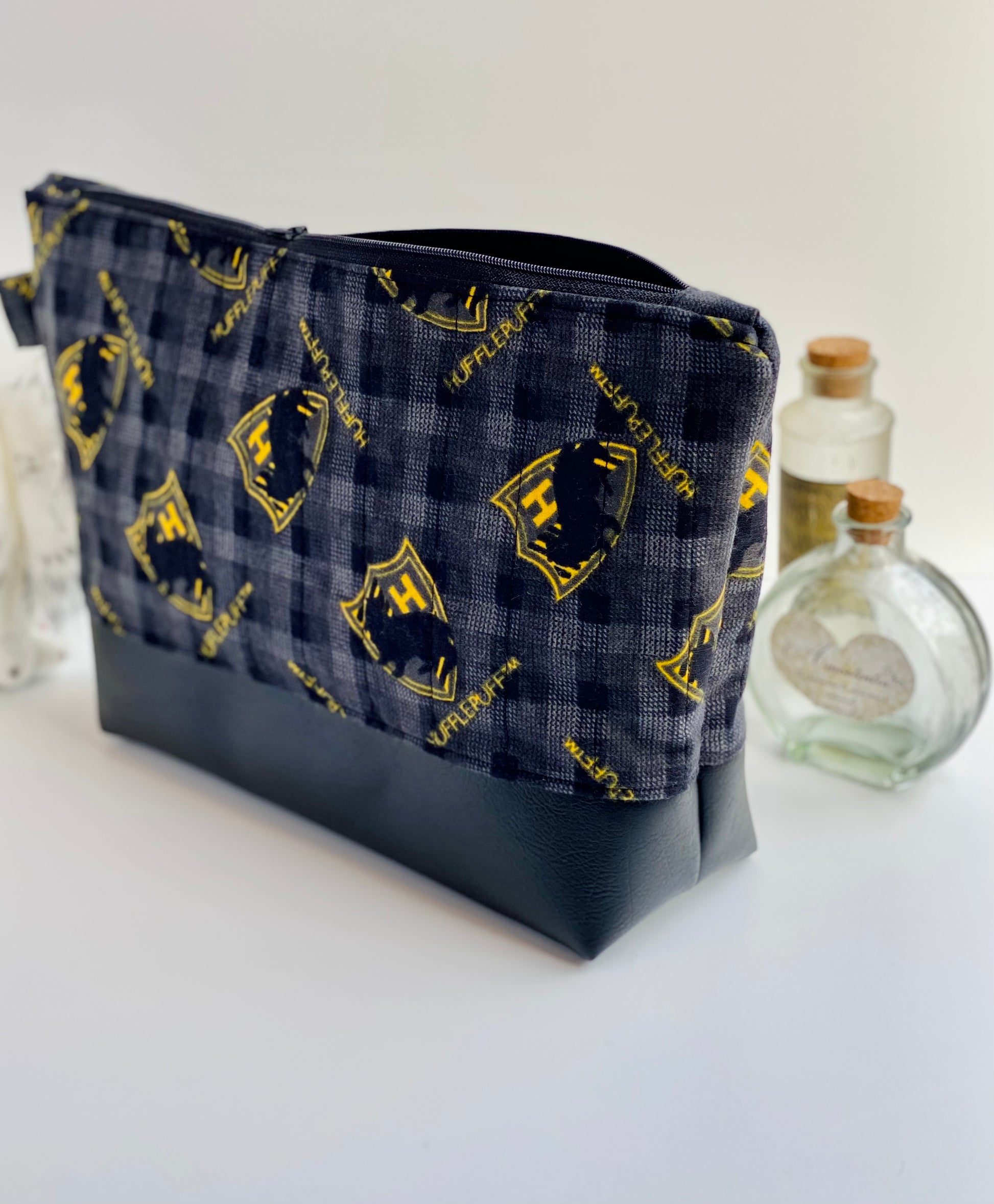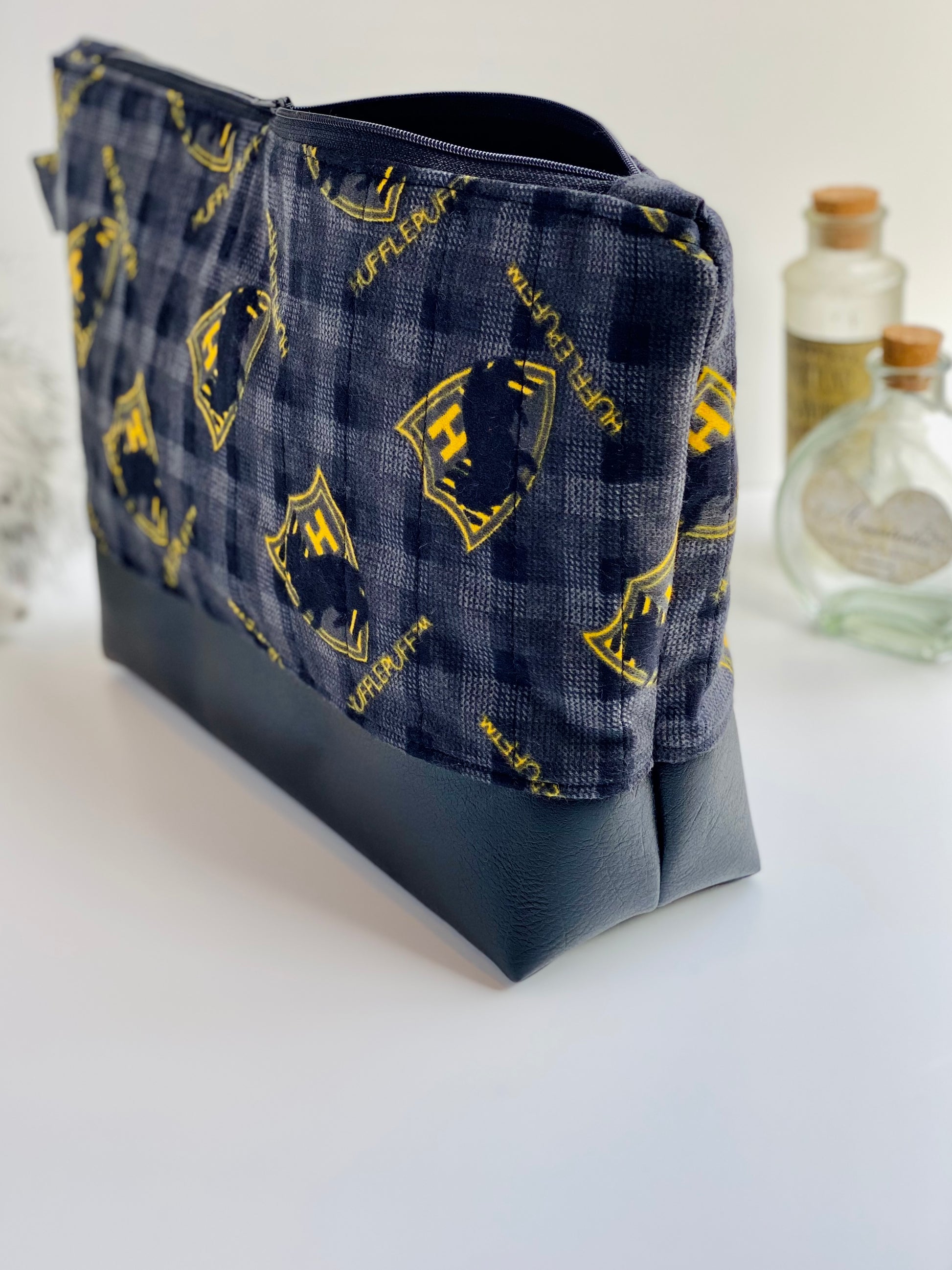 Black Hufflepuff Quilted Flannel Jumbo Pouch