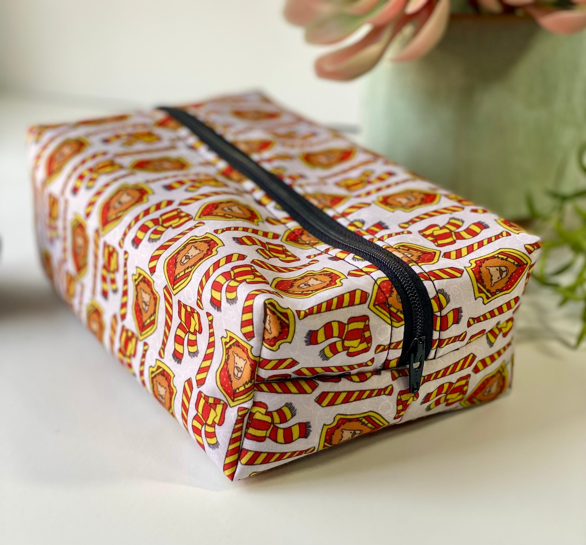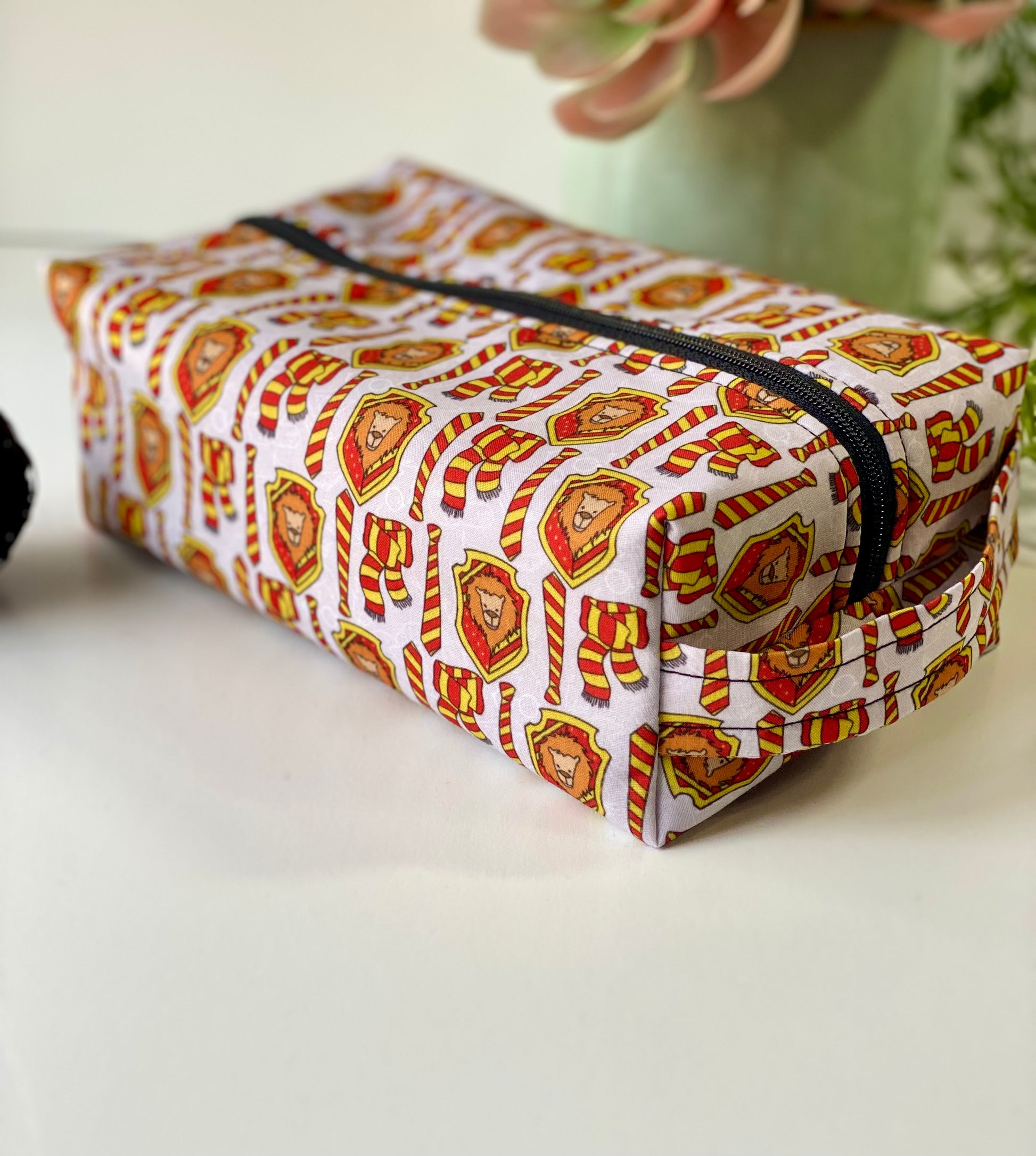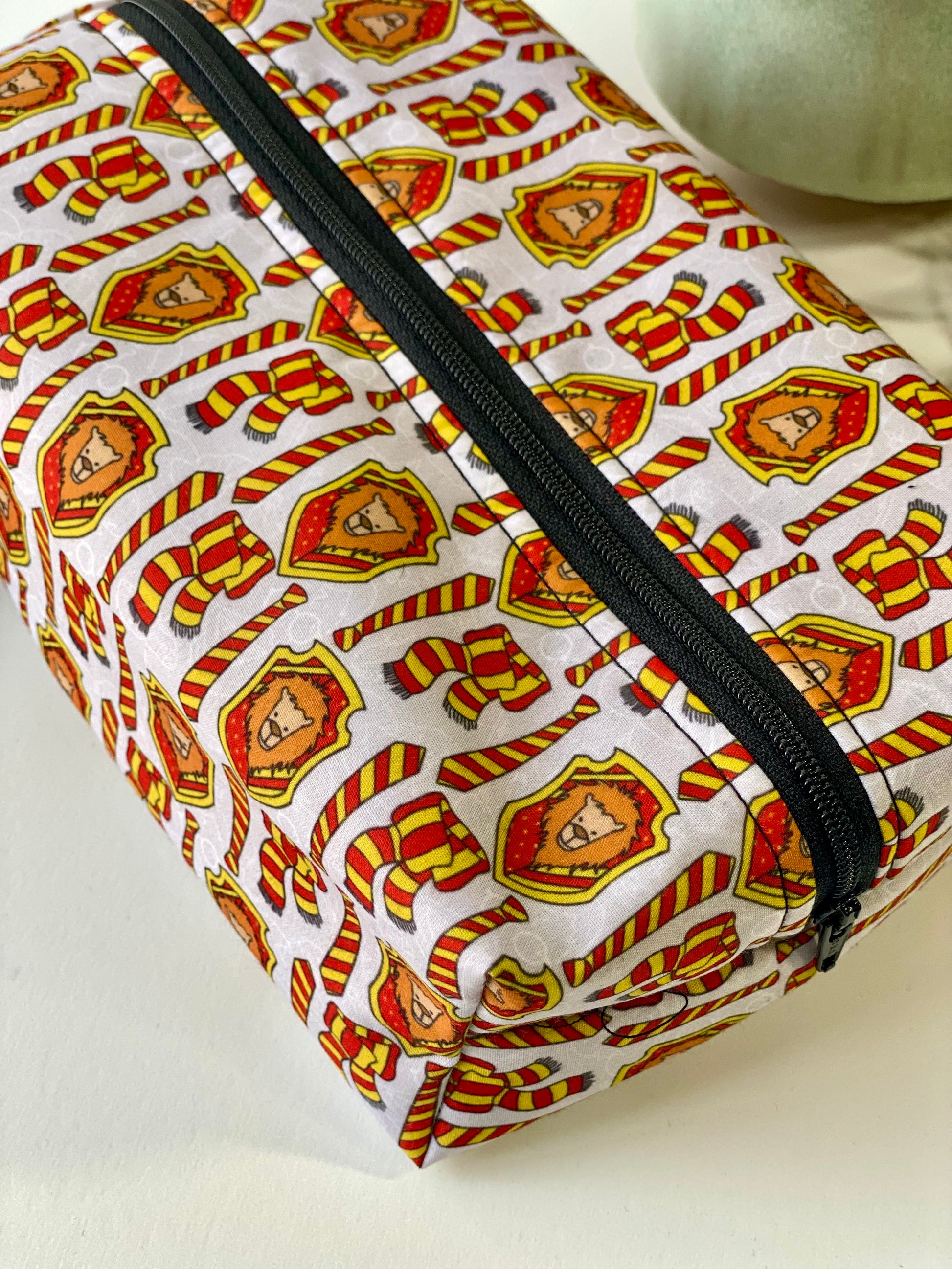 - Gryffindor house pattern with red and gold scarves and emblems