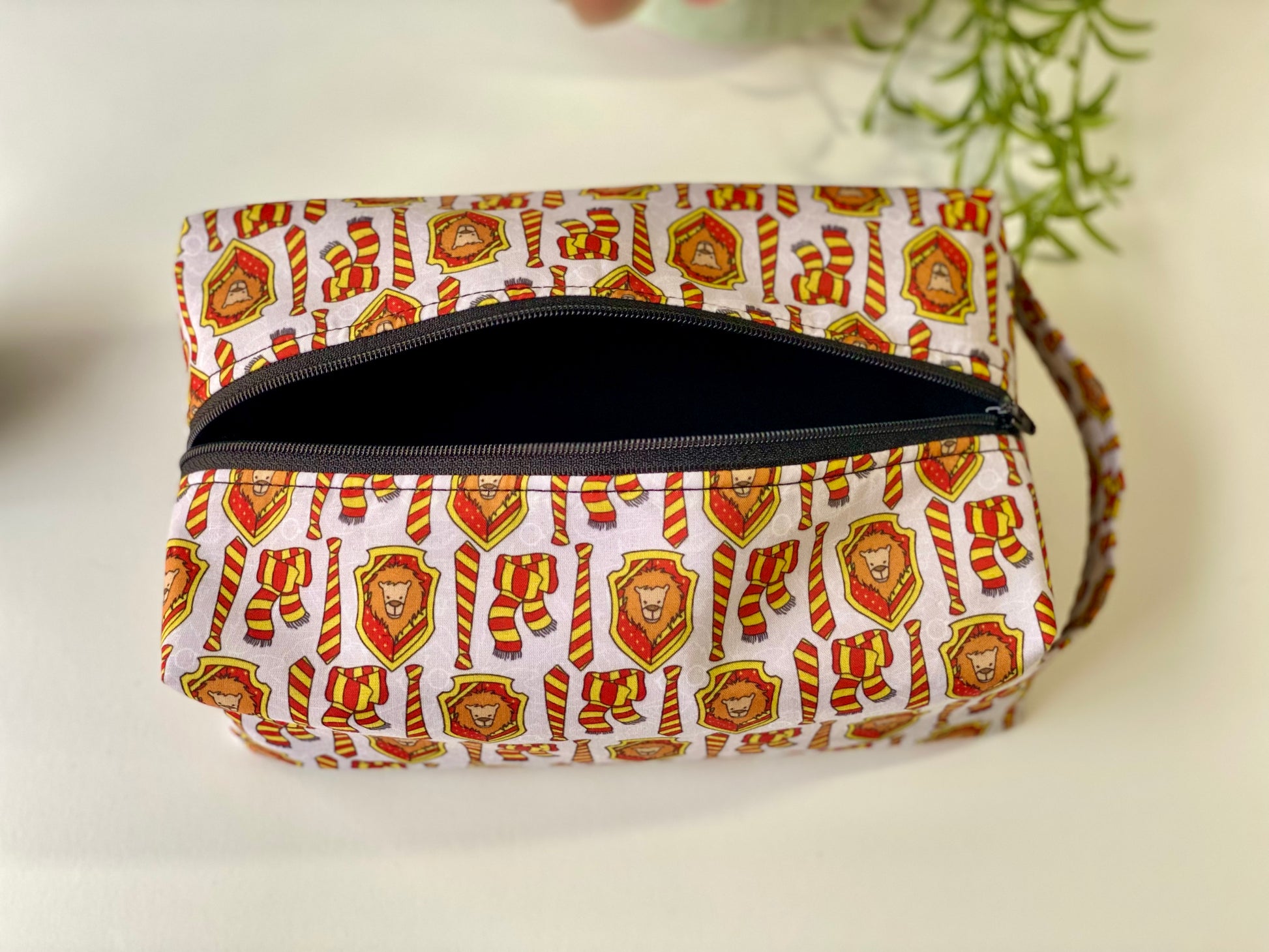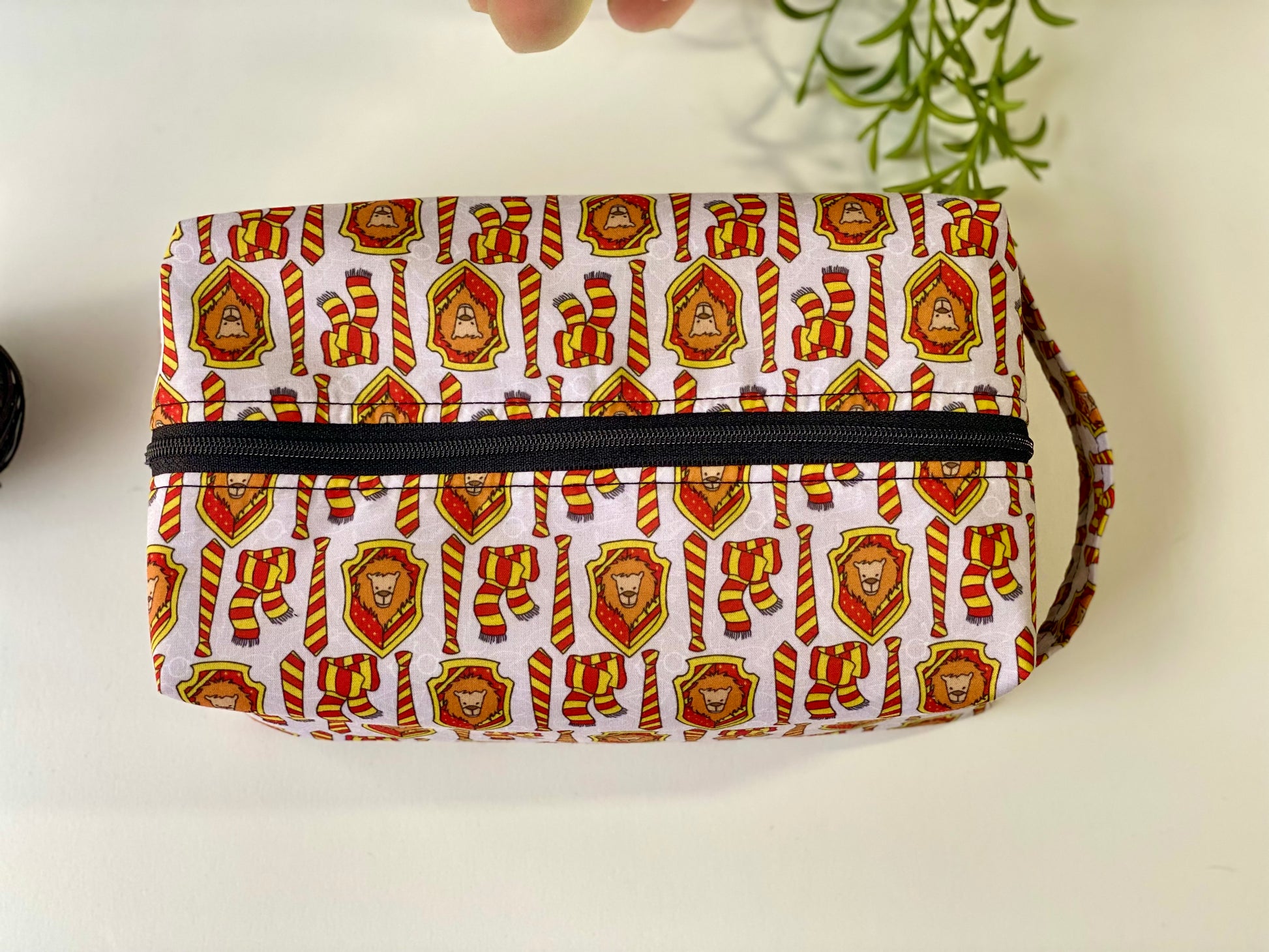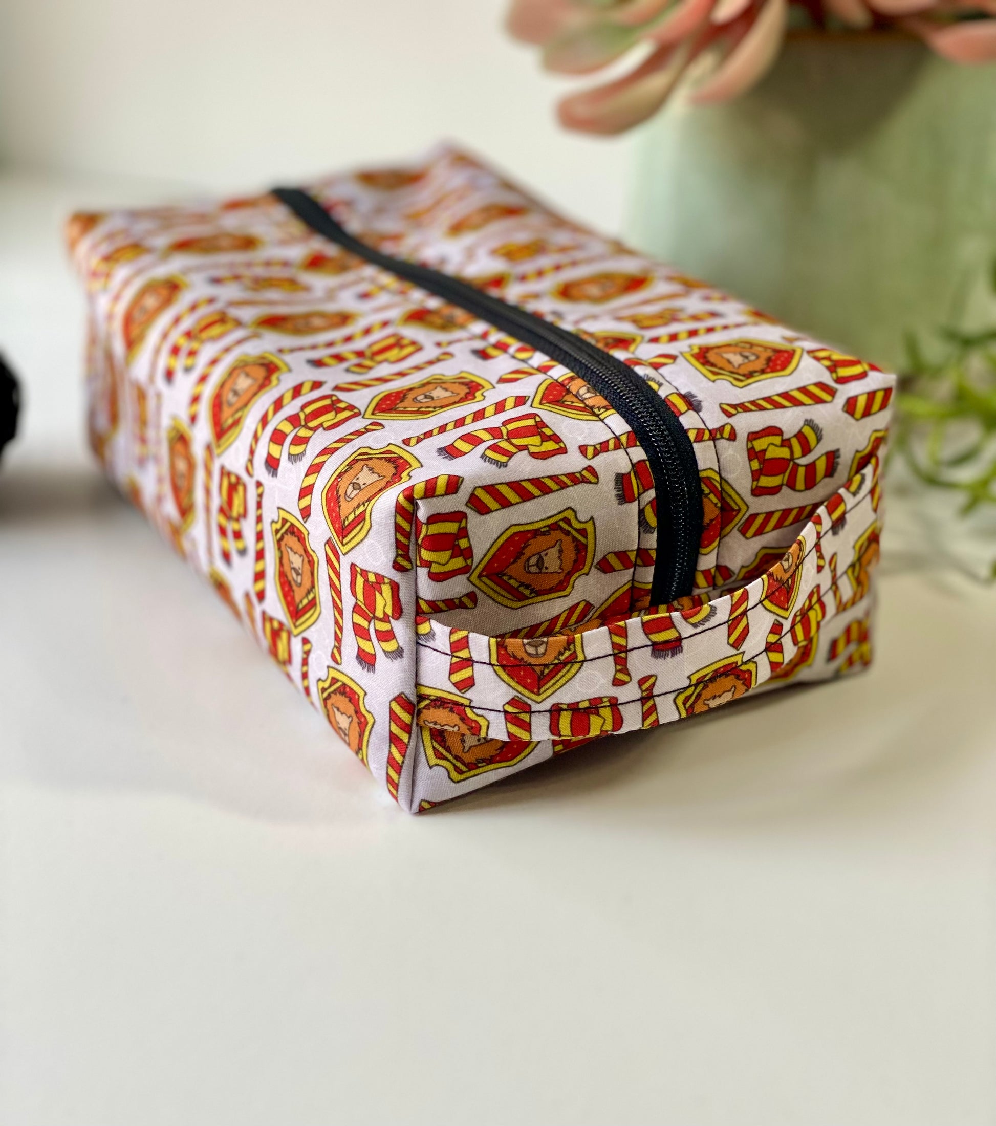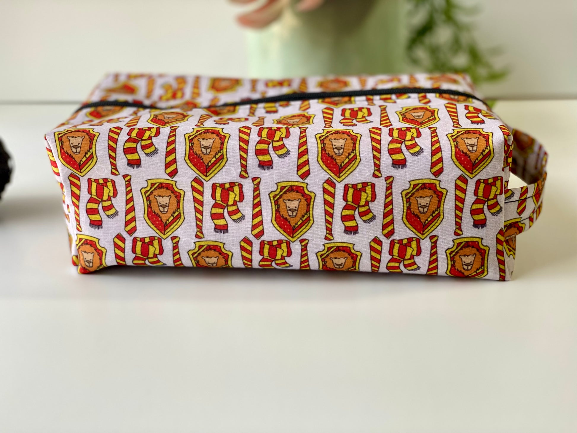 - Gryffindor house pattern with red and gold scarves and emblems