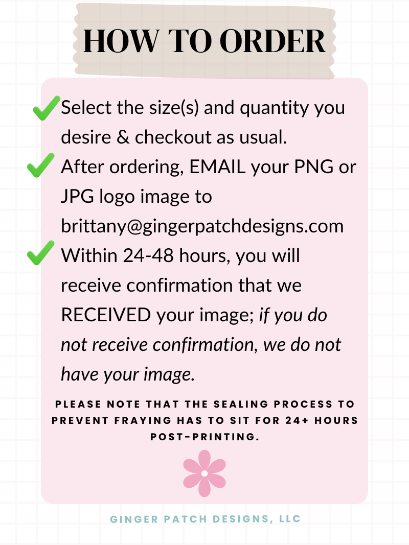 After ordering, EMAIL your PNG or JPG logo image to brittany@gingerpatchdesigns.com