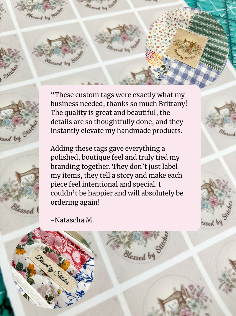 Whether you’re sewing pouches, bags, bowl cozies, quilts, or accessories, these tags blend seamlessly into your projects while giving them that “handmade, but elevated” look.