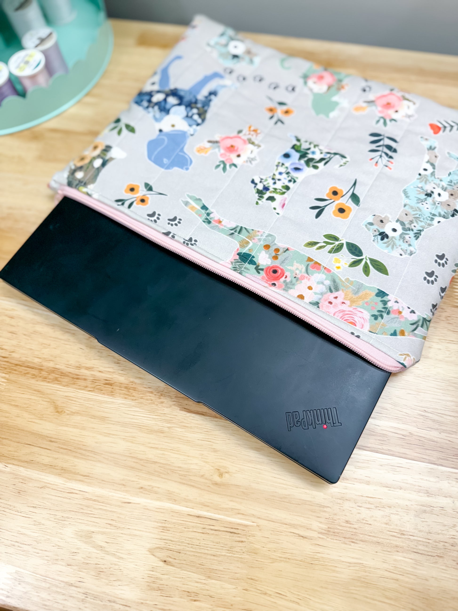 Carry your laptop in style with this handmade quilted laptop case, crafted with care for both beauty and function. Designed to keep your device safe, this padded laptop sleeve features high-quality quilting, a smooth zippered closure, and a cozy fabric lining that provides extra protection against scratches and everyday wear.