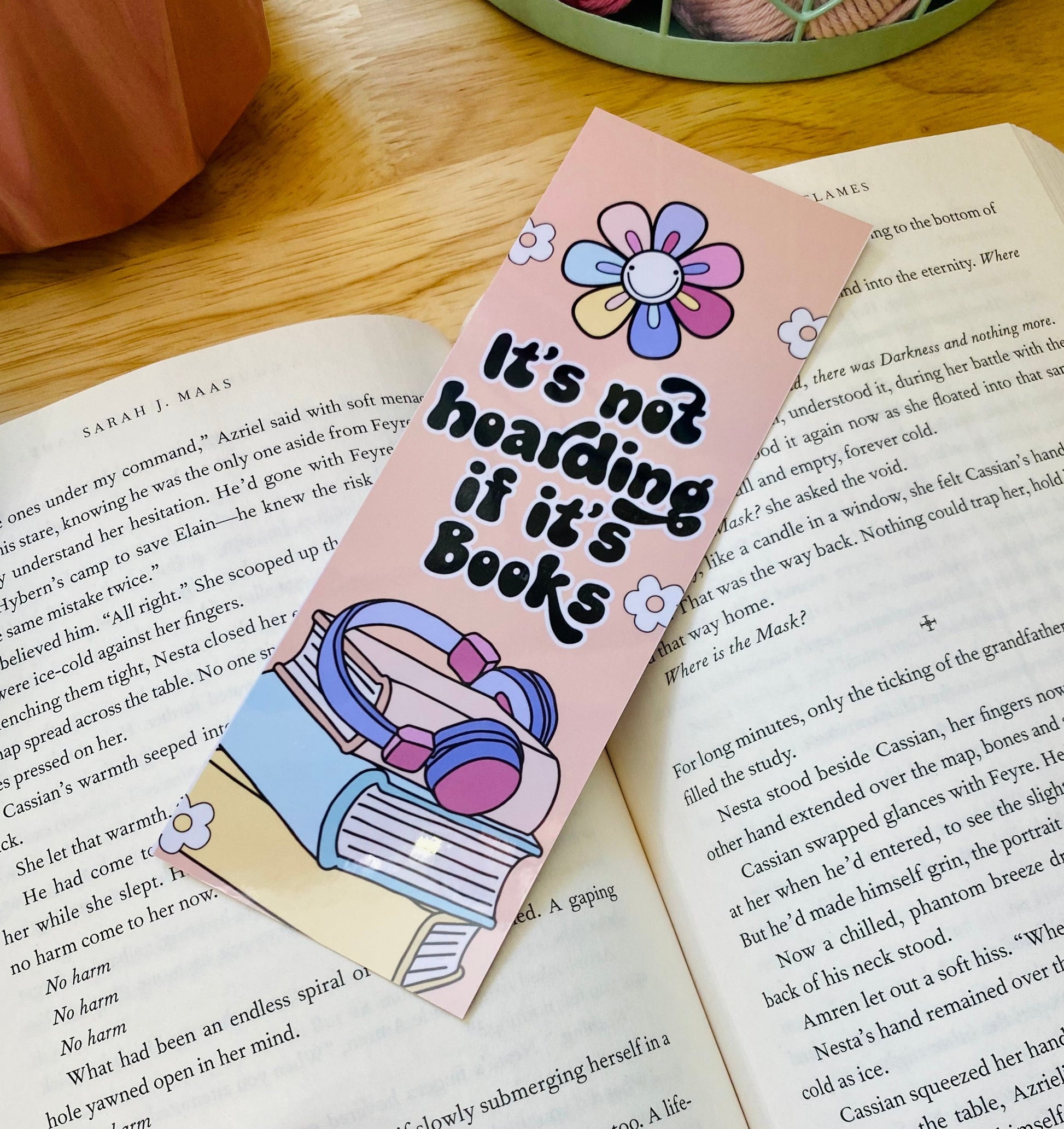 It's Not Hoarding If It's Books Bookmark, Retro Book Stack with Headphones Daisies