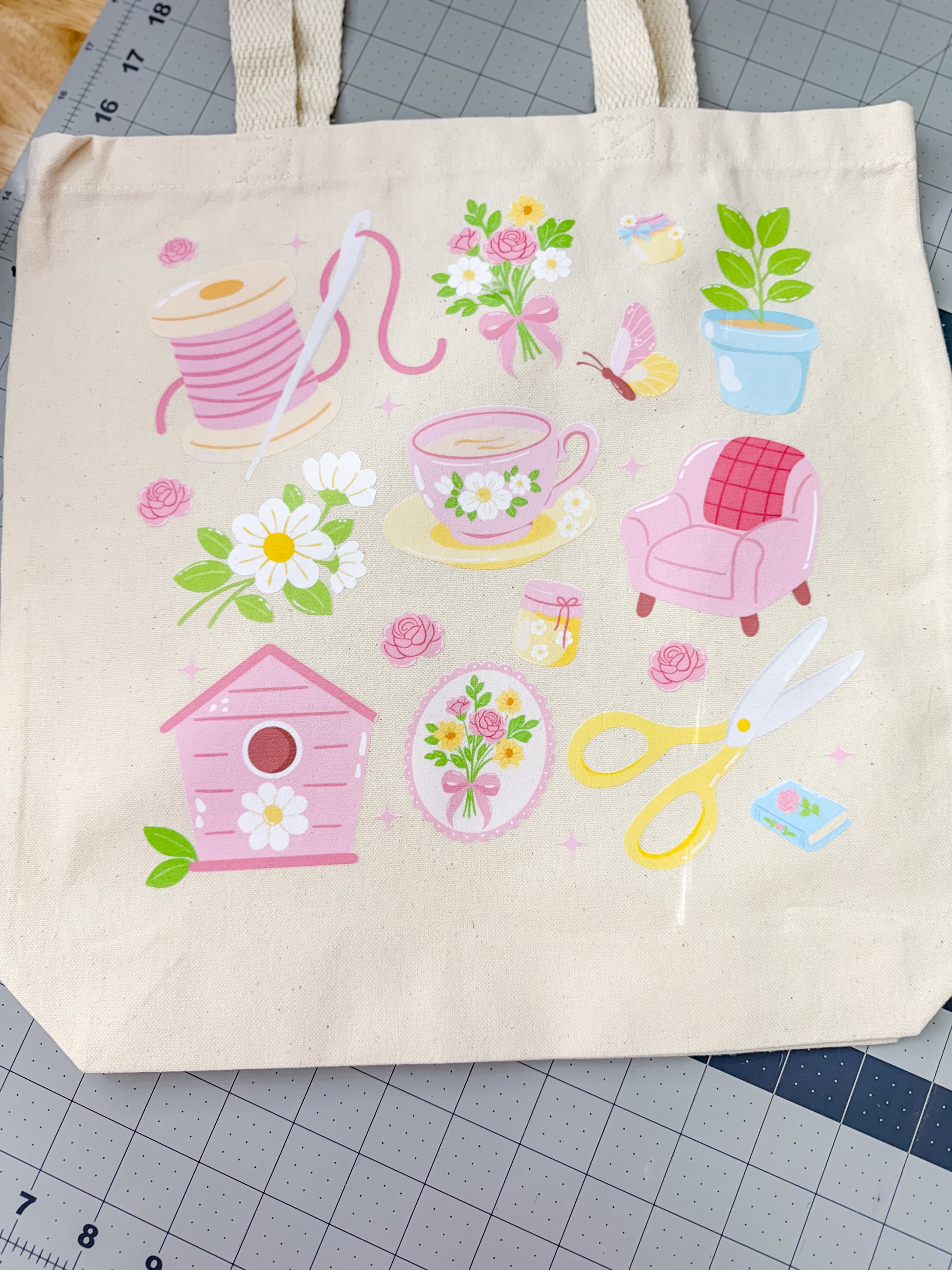 Whimsical Sewing Canvas Tote Bag