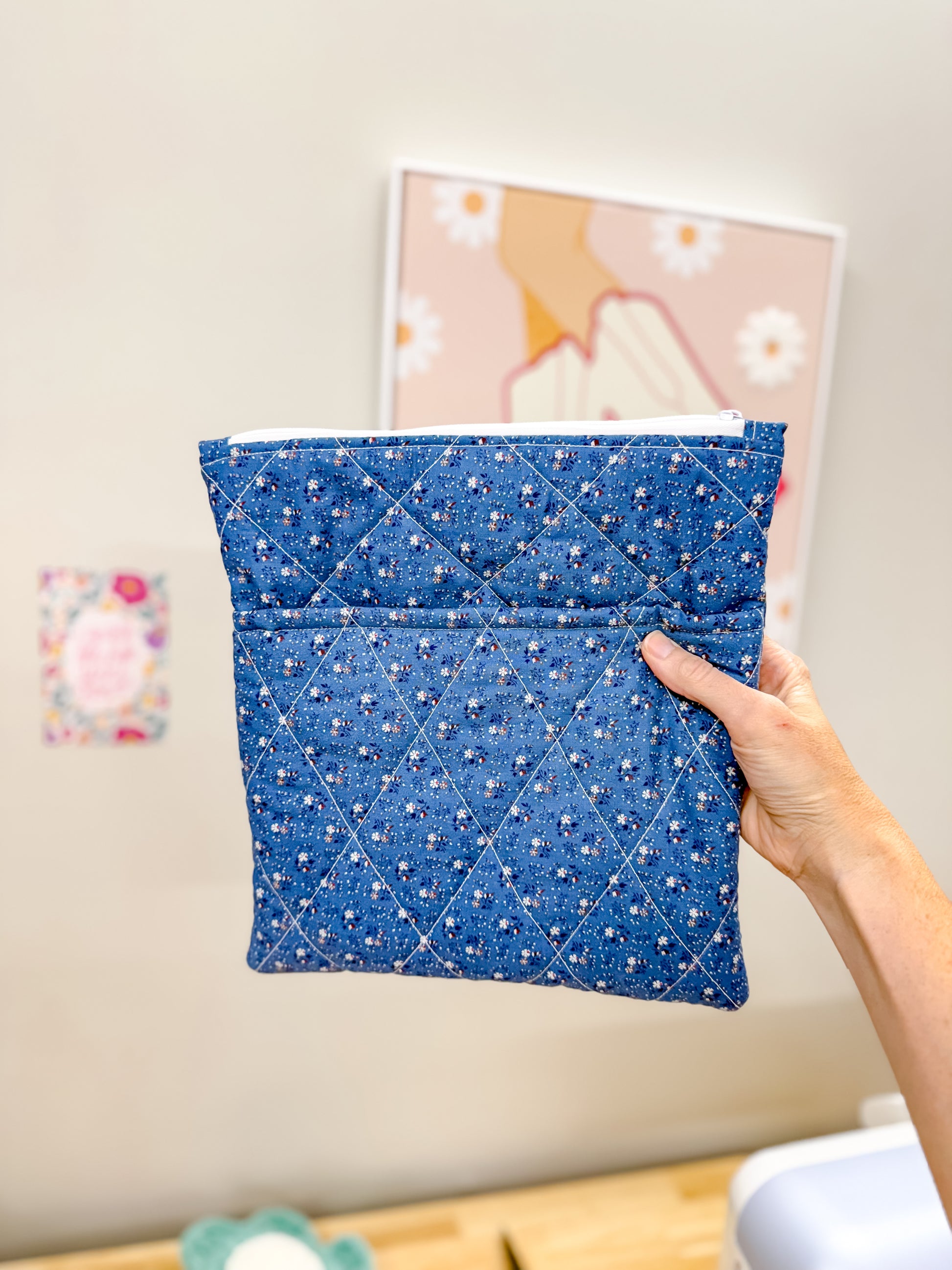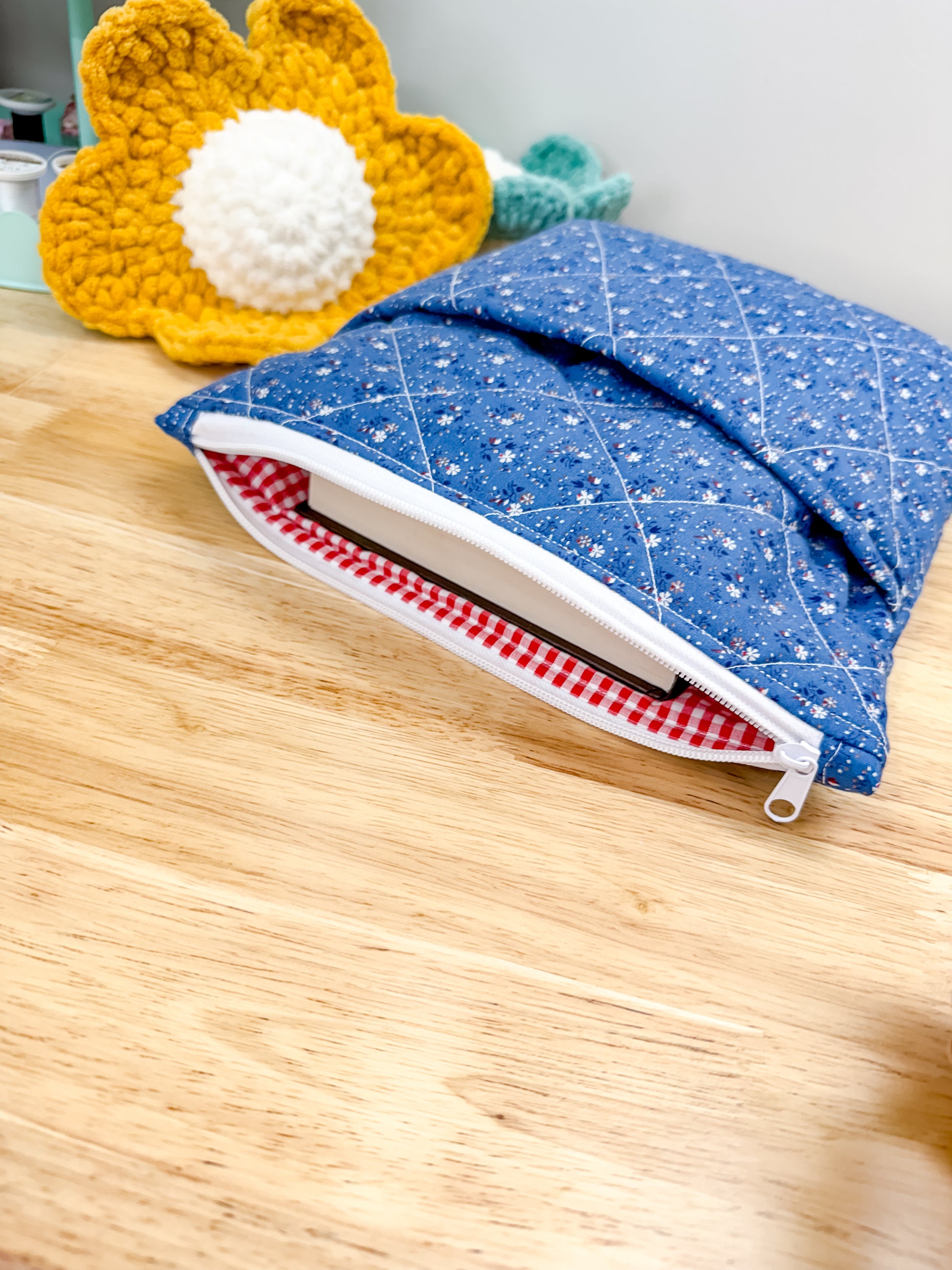 Quilted Pocket Book Sleeve with Zipper
